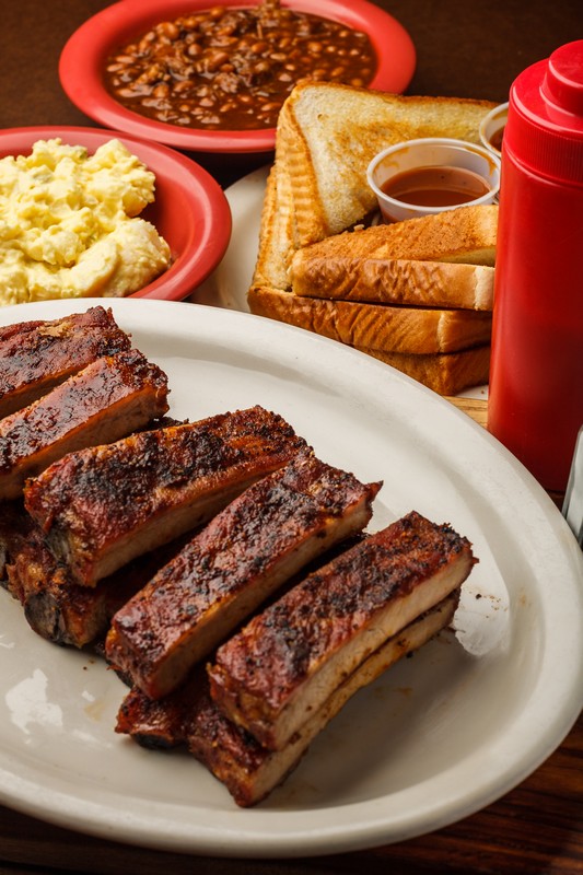 Sides | Baked Potato (+$1.24), Beans, Coleslaw, Corn, Cornbread, Fries, Hushpuppies, New Potatoes, Potato Salad, Side Salad (+$1.86), Sweet Potato (+$.63) |